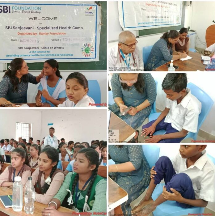 BHAWANIPATNA:ଏସବିଆଇ ଫୌଣ୍ଡସନ,ରାମକି ଫୌଣ୍ଡସନ ଏବଂ ଟାଉନ୍ ଉଚ୍ଚ ବିଦ୍ୟାଳୟ ପୁରୁଣାପଡା ଭବାନୀପାଟଣା ର ମିଳିତ ସହଯୋଗ ରେ ଆଜି ଭବାନୀପାଟଣା ବ୍ଲକ ର ସ୍ଥାନୀୟ ଟାଉନ୍ ଉଚ୍ଚସ ବିଦ୍ୟାଳୟ ରେ ଏକ ବିଶେଷ ଚାର୍ମ ସ୍ୱାସ୍ଥ୍ୟ ଶିବିର ଆୟୋଜିତ ହେଇଯାଇଛି। ବିଦ୍ୟାଳୟ ର ପ୍ରାଧାନ ଶିକ୍ଷକ ଶ୍ରୀ ଗୋରେଖ ଚନ୍ଦ୍ର ସାହୁ ଙ୍କ ଅଧ୍ୟକ୍ଷତାରେ ଆୟୋଜିତ ହୀଇଥିଲା।