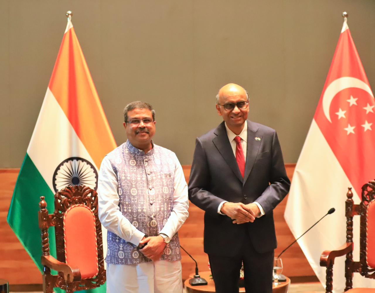 BHUBANESWAR: କେନ୍ଦ୍ର ଶିକ୍ଷା ମନ୍ତ୍ରୀ ଧର୍ମେନ୍ଦ୍ର ପ୍ରଧାନ ଶୁକ୍ରବାର ଭୁବନେଶ୍ୱରରେ ସିଙ୍ଗାପୁରର ରାଷ୍ଟ୍ରପତି ଥର୍ମନ ଶନ୍ମୁଗରନ୍ତ୍ରମଙ୍କୁ ଭେଟି ଭାରତୀୟ ଶିକ୍ଷା ବ୍ୟବସ୍ଥାରେ ହେଉଥିବା ସକାରାତ୍ମକ ପରିବର୍ତ୍ତନ ଏବଂ ପରିବର୍ତ୍ତିତ ଶିକ୍ଷା ଦୃଶ୍ୟପଟ୍ଟରେ ଜାତୀୟ ଶିକ୍ଷା ନୀତିର ପରିକଳ୍ପନା ଉପରେ ଆଲୋଚନା କରିଛନ୍ତି ।