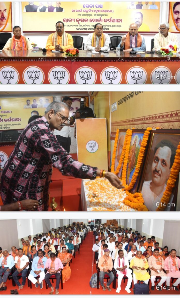 ଏହି କାର୍ଯ୍ୟକ୍ରମରେ ମନ୍ତ୍ରୀ ଶ୍ରୀ କୃଷ୍ଣଚନ୍ଦ୍ର ପାତ୍ର ଯୋଗଦେଇ କହିଛନ୍ତି ଯେ, ସେବା, ସମର୍ପଣ ଓ ସଙ୍କଳ୍ପର ମନ୍ତ୍ର ନେଇ ପ୍ରତ୍ୟେକ ଗାଁରେ ରାଜ୍ୟ ସରକାର କାର୍ଯ୍ୟ କରିବେ। ଏତଦ୍ବ୍ୟତୀତ ସ୍ଥାନୀୟ ଅଂଚଳରେ କୃଷି ଉତ୍ପାଦନ ସାମଗ୍ରୀର ପ୍ରଦର୍ଶନୀ କରାଯିବା ସହ ସଫଳ କୃଷକମାନଙ୍କୁ ସମ୍ମାନିତ କରିବା ଏବଂ “ଭୋକାଲ ଫର ଲୋକାଲ” ଅଭିଯାନ କରି କୃଷକମାନଙ୍କ ପାଖରେ ପହଁଚିବାକୁ ଆହ୍ୱାନ ଦେଇଥିଲେ। ମୋର୍ଚ୍ଚାର ରାଜ୍ୟ ସଭାପତି ଶ୍ରୀ ମହେଶ୍ୱର ସାହୁ ସେବା ପକ୍ଷରେ ରାଜ୍ୟର ସମସ୍ତଙ୍କ ଘରେ ଚାରା ରୋପଣ ଉପରେ ଗୁରୁତ୍ୱାରୋପ କରିଥିଲେ। ସେପ୍େଟମ୍ବର ୯ ଓ ୧୦ରେ ପ୍ରତ୍ୟେକ ଜିଲ୍ଲାରେ ଏଭଳି କର୍ମଶାଳା ଆୟୋଜନ କରିବା ପାଇଁ ନେତାମାନଙ୍କୁ ଦାୟିତ୍ୱ ବଂଟନ କରିଥିଲେ।