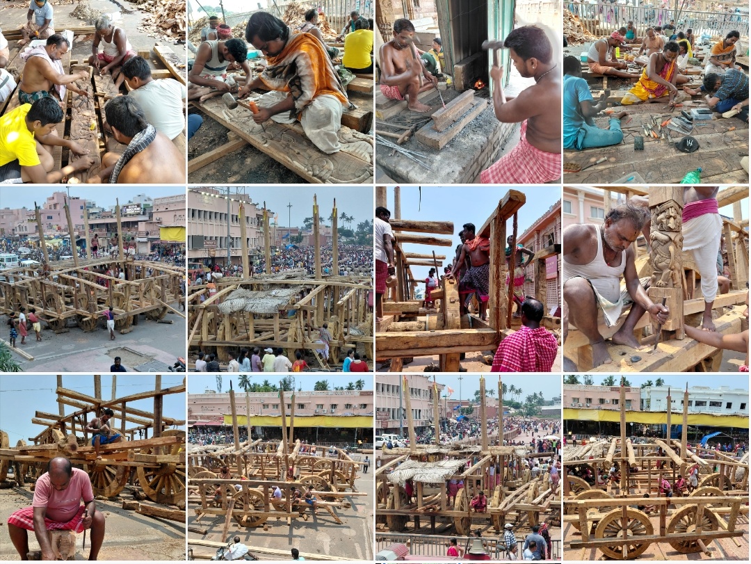 PURI:ଆଜି ରଥ ନିର୍ମାଣର ୩୮ ତମ ଦିବସରେ ରଥ ନିର୍ମାଣକାରୀ ସେବକ ମାନେ ରଥଖଳା ଠାରେ ଘ.୮.୦୦ ଟିକା ପୂର୍ବରୁ ଉପସ୍ଥିତ୍ପୂର୍ବକ ଉପସ୍ଥାନ ଦେଇ ମୁଖ୍ୟ ମହାରଣାଙ୍କ ମାର୍ଗ ଦର୍ଶନ ରେ ନିର୍ମାଣ କାର୍ଯ୍ୟ ଆରମ୍ଭ କରିଥିଲେ ।