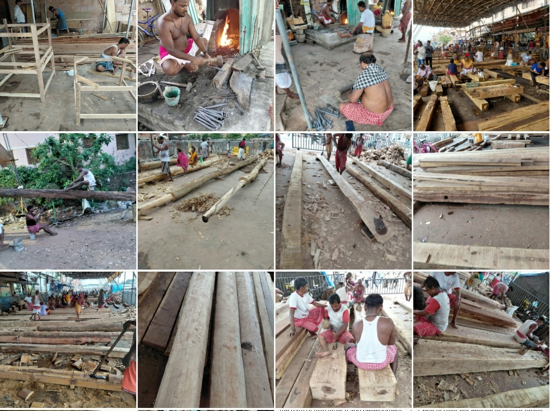 ଦୋଳବେଦୀ ଅସ୍ଥାୟୀ କମାର ଶାଳ ରେ ଓଝା ସେବକ ମାନେ ତିନି ରଥର ଗଣ୍ଡା କଣ୍ଟା, ଗୟଳ କଣ୍ଟା ସହ ଗରଗରା କଣ୍ଟା ନିର୍ମାଣ ଜାରୀରଖିଛନ୍ତି ।