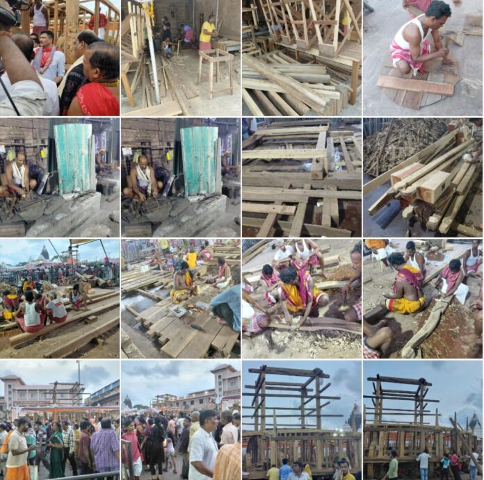 PURI:ଆଜି ରଥ ନିର୍ମାଣର ୪୨ ତମ ଦିବସରେ ରଥ ନିର୍ମାଣକାରୀ ସେବକ ମାନେ ରଥ ଖଳା ଠାରେ ସକାଳ ଘ.୮.୦୦ ଟିକା ପୂର୍ବରୁ ଉପସ୍ଥିତ ପୂର୍ବକ ଉପସ୍ଥାନ ଦେଇ ମୁଖ୍ୟ ମହାରଣାଙ୍କ ମାର୍ଗ ଦର୍ଶନ ରେ ନିର୍ମାଣ କାର୍ଯ୍ୟ ଆରମ୍ଭ କରିଥିଲେ।