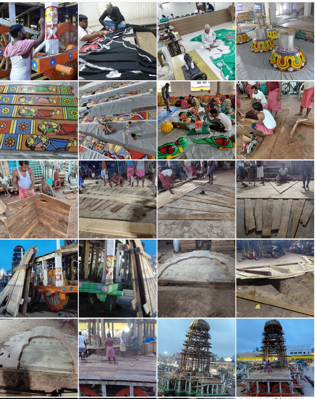 ଦୋଳବେଦୀ ଅସ୍ଥାୟୀ କମାର ସାଲ ରେ ଓଝା ସେବକ ମାନେ ତିନି ରଥର ଧୂଳି ଦଣ୍ଡା ଏବଂ ଶୁଆ ସେଟିଂ ପାଇଁ ନରାଜ କଣ୍ଟା ନିର୍ମାଣ ଶେଷ କରି ତିନିରଥ ର ସାରଥି ବାଗୀଆ କଣ୍ଟା (ହାତ ଏବଂ ଜଏଣ୍ଟ ସ୍ଥାନ ପାଇଁ) ନିର୍ମାଣ ସହ ପ୍ରଭା କଣ୍ଟା ନିର୍ମାଣ ଜାରୀ ରଖିଛନ୍ତି।