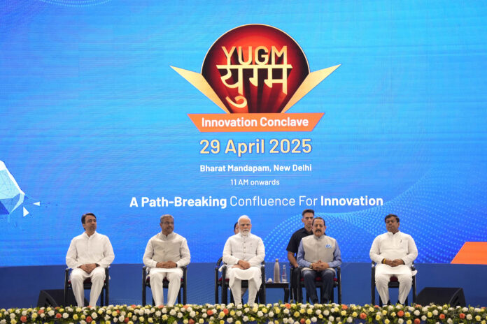 PM attends YUGM Innovation Conclave at Bharat Mandapam, in New Delhi on April 29, 2025.