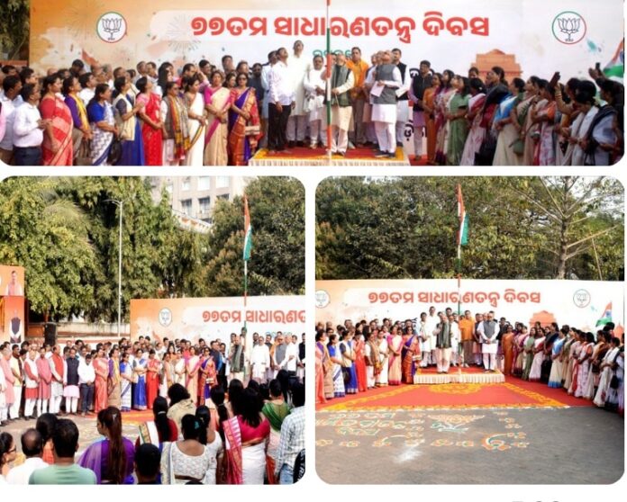 BHUBANESWAR:The 77th Republic Day of the country was celebrated with great pomp and ceremony at the State Office today. On this occasion, the State President Shri Manmohan Samal hoisted the national flag and conveyed his greetings and gratitude to the 4.5 crore people of Odisha on the occasion of Republic Day. After this, the National Anthem was sung collectively.