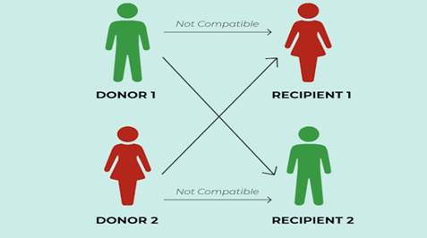 In a Swap Transplant, a patient with renal failure who has a willing living donor—but is unable to receive the kidney due to an incompatible blood group or the presence of HLA antibodies—can still undergo a transplant by exchanging donors with another incompatible pair. Through this arrangement, both recipients receive compatible kidneys, resulting in successful transplants for both pairs.