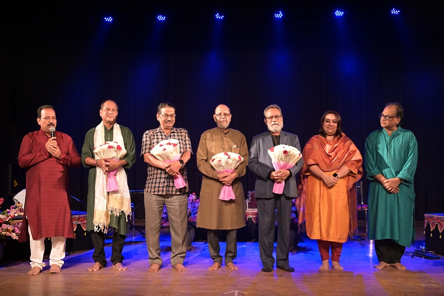 The programme for the evening was in two parts—A music performance followed by a group dance presentation. In the first half, entitled ‘From Raga to Bhava—A musical experience with Rupak Kumar Parida,’ the audience witnessed the soulful recital of renowned vocalist Shri Rupak Kumar Parida, accompanied by the able and versatile musical accompaniment of Shri Nikunja Bihari Samal on the Tabla, Shri Bhabatosh Mohanty on the guitar, Shri M. Shimadri on the flute and saxophone, and Shri Dipu Dash Mohapatra on the keyboard.