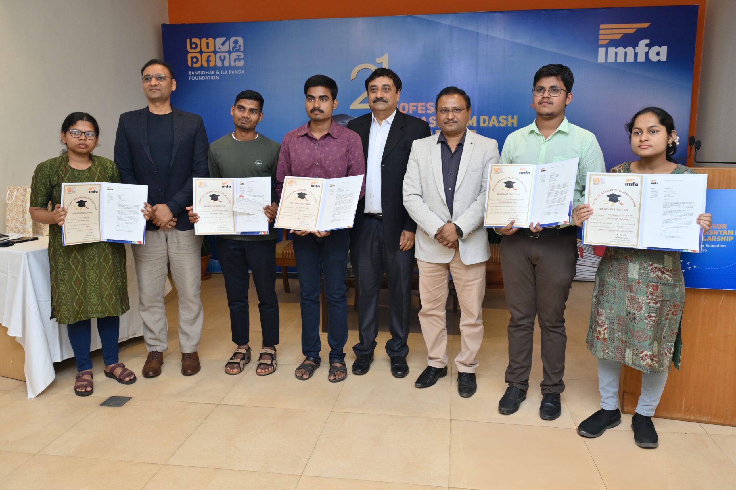 Every year meritorious students, pursuing professional degrees in engineering, medicine, STEM and liberal arts, receive this prestigious scholarship. The selected candidates get up to 90% of the academic fee and eligible expenses for 4 year course amounting up to Rs. 6 Lakhs per recipient. Instituted in 2005 by IMFA, this scholarship is named after renowned historian Late Prof. Ghanashyam Dash, father of late Mrs. Ila Panda; is to provide equal opportunity through financial assistance to facilitate higher education.