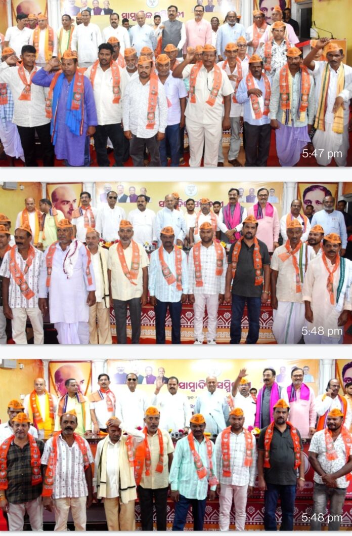 Similarly, Sarpanch Bhavani Patra of Baghmari under Rajnagar Assembly constituency in Kendrapara district, Committee member Manoranjan Mandal, Sarpanch Naresh Chandra Mallick of Dihudipur Gram Panchayat, Committee member Pramila Khatua, Panchanan Parmanik, Mahadev Behera, Chandan Sahu, Susanta Mandal, Suresh Parshti, Tirthnaad Khatua, Kherod Mallick, Muktikanta Patra, Basudev Giri, Pattamundai BJD former president Ranjit Kumar Mallick and hundreds of workers left the BJD and Congress parties and officially joined the BJP.