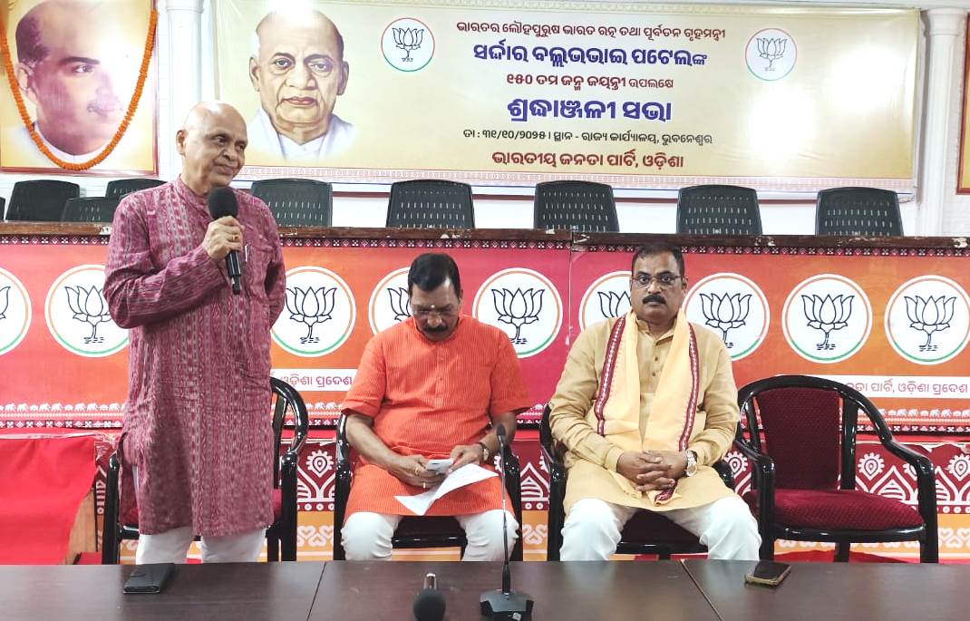 Today is the 150th birth anniversary of the Iron Man Sardar Vallabhbhai Patel and his role in uniting the princely states after independence and making India a great nation. In 2014, in honor of this great son of the father, the legendary Prime Minister Shri Narendra Modi launched the Run for Unity program. ‘Ekta Dauda’ is held every year on October 31 in the memory of Sardar Patel. Today, on this occasion, in the tribute meeting held at the state office under the chairmanship of State Vice President Dr. Jatin Mohanty, Dr. Purna Chandra Mallick mentioned the contribution of Sardar Patel.