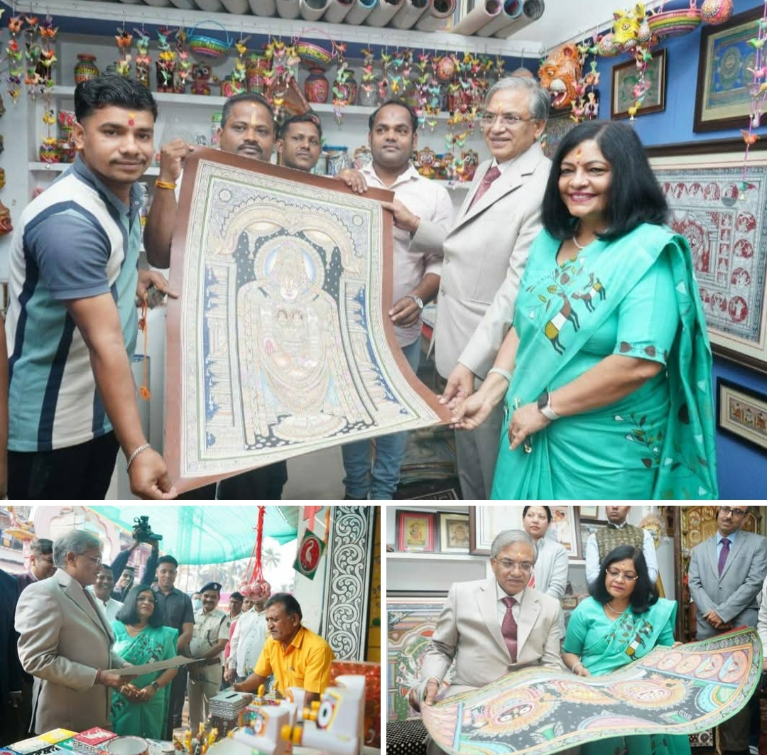 PURI/BHUBANESWAR:The Chief Election Commissioner of India, Shri Gyanesh Kumar today visited the heritage crafts village of Raghurajpur. He experienced firsthand the exquisite Pattachitra paintings, Tussar textiles, woodcraft and other artistic creations made by the local artisans, and also interacted with them. During the visit, the Chief Electoral Officer of Odisha, Shri R. S. Gopalan, along with senior officials, was present.