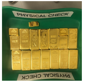 Acting on specific intelligence, DRI officers intercepted an Indian lady passenger aged around 33 years, who had arrived from Dubai to Bengaluru via Emirates flight on March 3, 2025. Upon examination, gold bars weighing 14.2 kg were found ingeniously concealed on person. The contraband, valued at Rs. 12.56 Crore was seized under the provisions of the Customs Act, 1962.