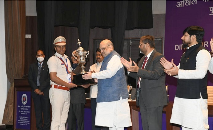 On Friday, IIC, Gangapur PS received the award from Union Home Minister Amit Shah at Lucknow.