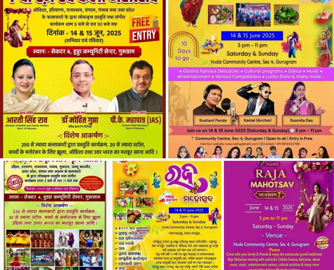 GURUGRAM/NEW DELHI:Hectic preparations are underway to celebrate seventh edition of Raja Mahotsava in Gurugram.Considered as the largest and most popular People’s Festival of Odisha, ‘Raja’ symbolizes the celebration of essence, excellence and exuberance of Odisha.The Parba use to be observed as an obeisance to womanhood at a time, when Mother Earth gets fertile for cultivation during Monsoon Season.