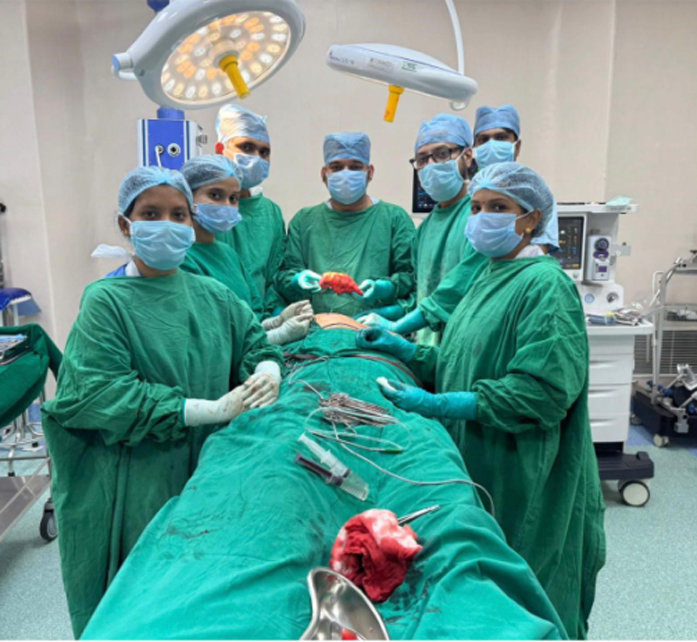The surgical team comprised Dr. Sameer Panigrahi, CTVS Surgeon, Dr. Priyajeet Panigrahi, Senior ENT Surgeon and Dr. Sairudra Puhan, Onco Surgeon, with anaesthesia support led by Dr. Pratyuaj Kanti Mishra, assisted by a dedicated OT nursing and paramedical team.
