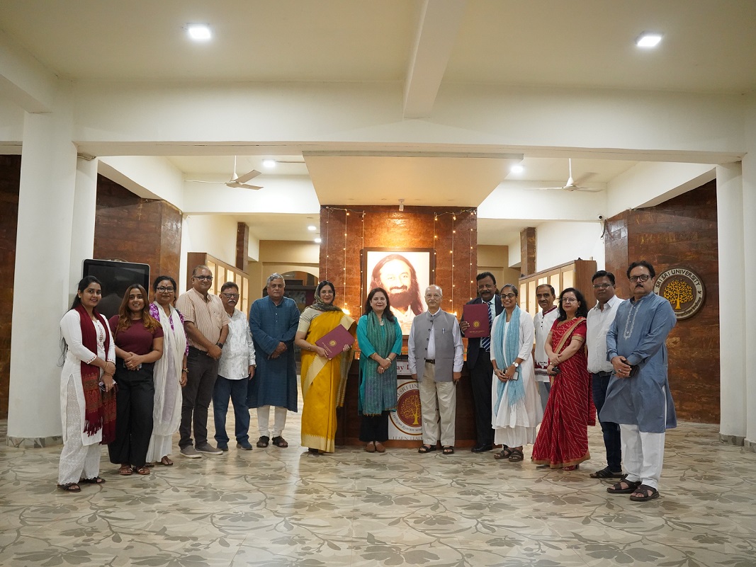 The MOU was signed by Dr. Biswajit Mohanty, State Convener of Intach and Mrs. Rajita Kulkarni, President of Sri Sri University in the presence of Registrar Dr. Anil Sharma, Dean Prof. Anisa Azharunnisa, and Dean Rupal Shah. The MOU will facilitate collaborative efforts to further common objectives through various activities. Dr. Tej Pratap, Vice Chancellor of the University said that both the organizations will work towards promoting academic and research facilities, conducting training programmes on culture education, heritage, tourism and related subjects for students and academia. The MOU will lead to synergy between the two institutions and capacity building, training and awareness programmes will be conducted. The students of the University will benefit by way of field visits, conservation training, photography and content creation.