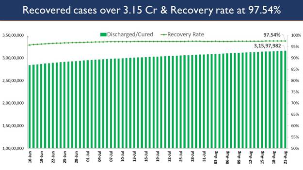Consequently, India’s recovery rate stands at 97.54%, the highest since March 2020.