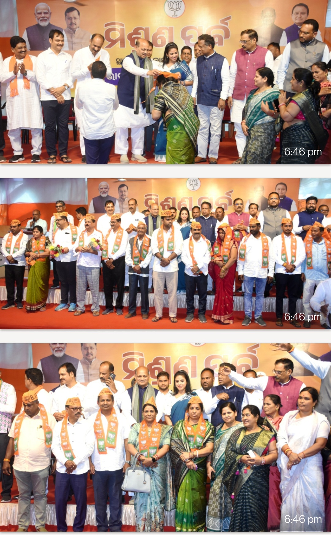 Inspired by the ideology of BJP and expressing faith in the developmental work of the double-engine government in the state, today, Jagatsinghpur district Birdi block president Mamata Patra and Puri district Krishnaprasad block president Sarojini Tarai left BJD and joined BJP with hundreds of supporters. This merger has further strengthened the party organization in Tirtol constituency, Jagatsinghpur district, Brahmagiri constituency and Puri district, said State President Shri Manmohan Samal at the merger ceremony held at the State Office today.