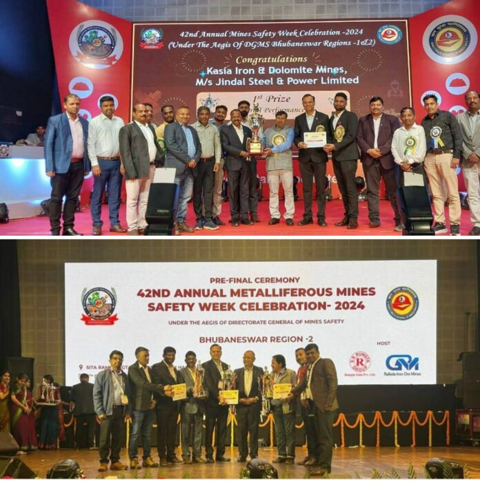 JODA/BARBIL: Jindal Steel has been recognized for its outstanding commitment to workplace safety, with its Kasia and Tensa Mines receiving multiple accolades during the 42nd Annual Metalliferous Mines Safety Week Celebration – 2024.