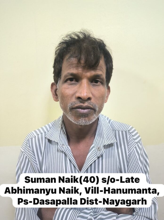 ⁠Details of accused arrested and forwarded: Suman Naik(40) s/o-Late Abhimanyu Naik, Vill-Hanumanta, PS-Dasapalla Dist-Nayagarh At/Pre-Unit-VIII, Narayani Basti, Near Gate No-04 DAV school, Nayapalli.