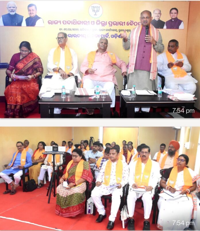 BHUBANESWAR:An important state meeting was held at the state office today under the chairmanship of State President Shri Manmohan Samal. On this occasion, detailed discussions were held on the organizational aspects of the party, starting from the booth committee to the mandal committee and the district committee.