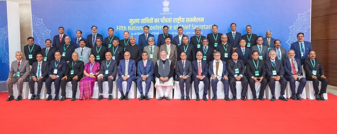 The Prime Minister posted on X:”Had insightful discussions on various issues relating to governance and reforms during the National Conference of Chief Secretaries being held in Delhi.”