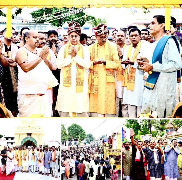 RAIPUR: Bahuda Yatra was celebrated at the biggest Jagannath Temple in Chhattisgarh at Gayatri Nagar in Raipur amidst pious atmosphere and spiritual fervour. To mark the occasion special religious rituals were performed before the four deities stationed at Adap Mandap inside the Aunt’s house at the basement of the main Temple till afternoon. At around 5.00 pm, the Gods and Goddess were taken in Pahandi procession to the elegantly decorated three chariots standing in front of the temple.