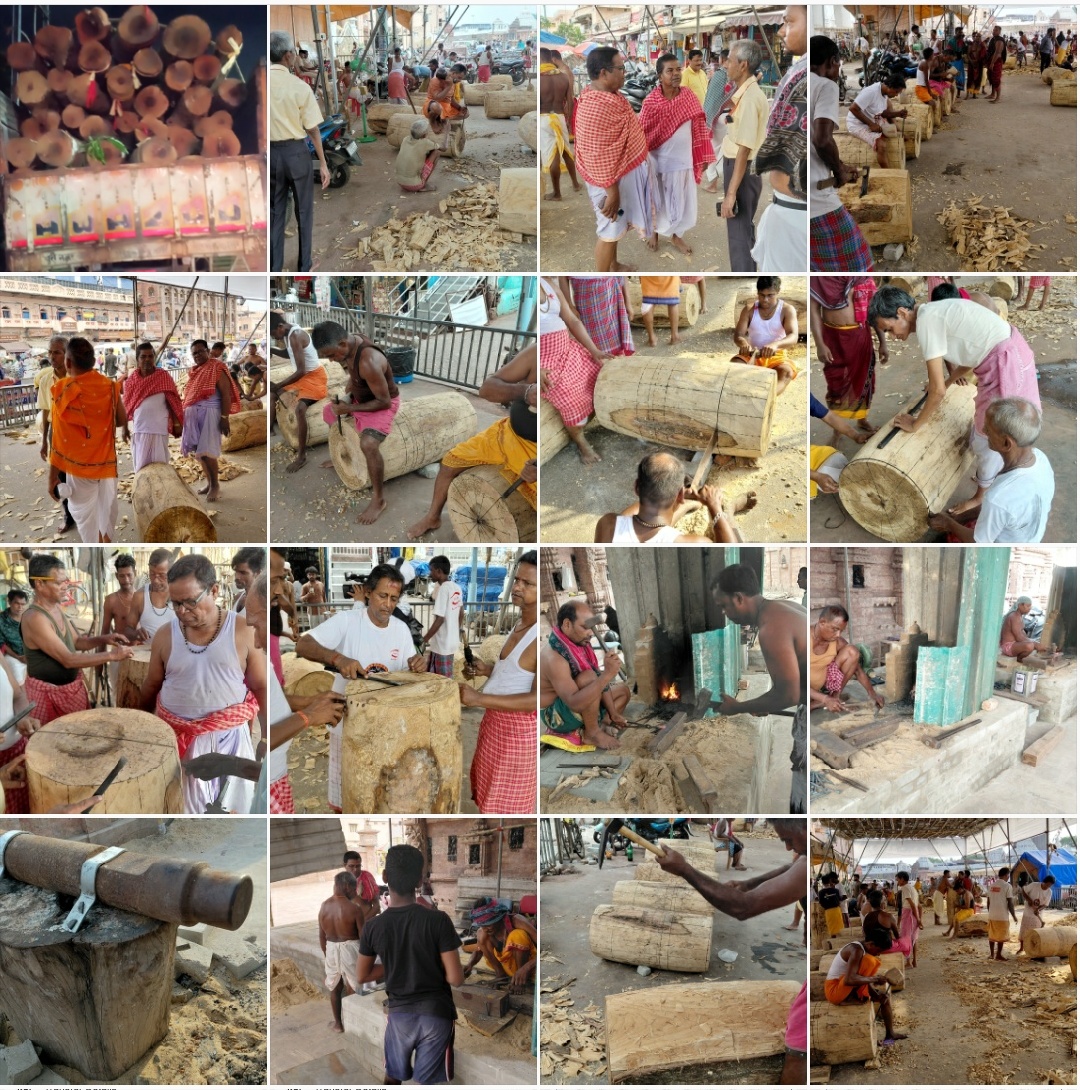 PURI/BHUBANESWAR:Today, on the fifth day on Saturday of the chariot construction, the construction workers arrived at the chariot yard before 8:00 AM and began the construction work under the guidance of the Chief Maharana.A total of 42 tumbas of the Triniratha have been completed, and the thread is being tied in the tumbas for the tumbas bindha: Work completed.