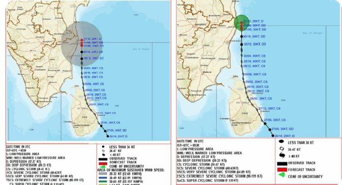 The minimum distance of the centre of the deep depression from north Tamil Nadu-Puducherry coasts is about 40 km.