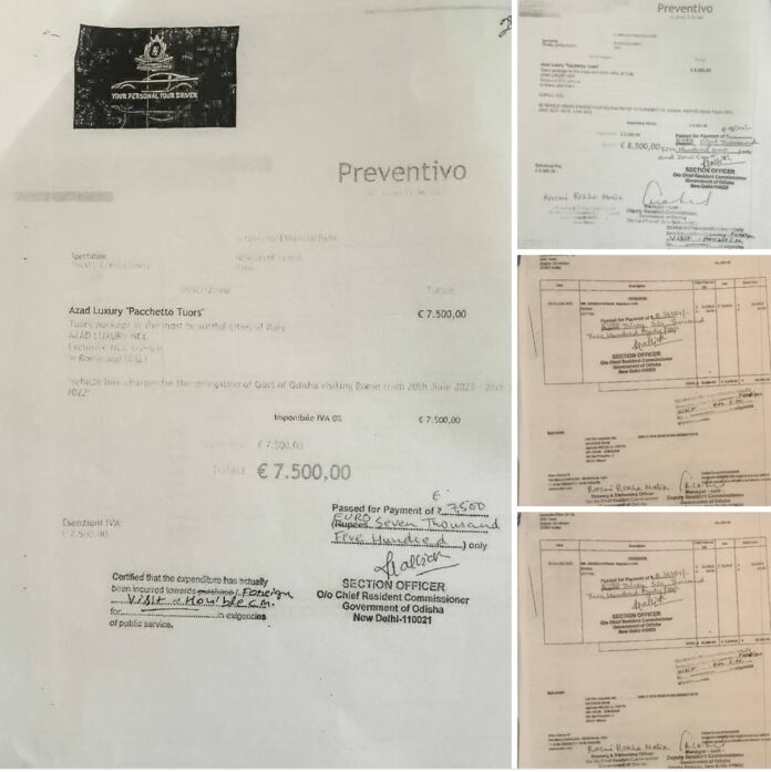 These two bills are from Azad Luxury Pacchetto Tour Travel Agency in Rome. Former Chief Minister Naveen Patnaik, former IAS VK Pandian and Mr. IPS Officer Ravi Kant went on a tour of Italy and Rome from June 20 to 25, 2022 at the expense of the people of Odisha.
