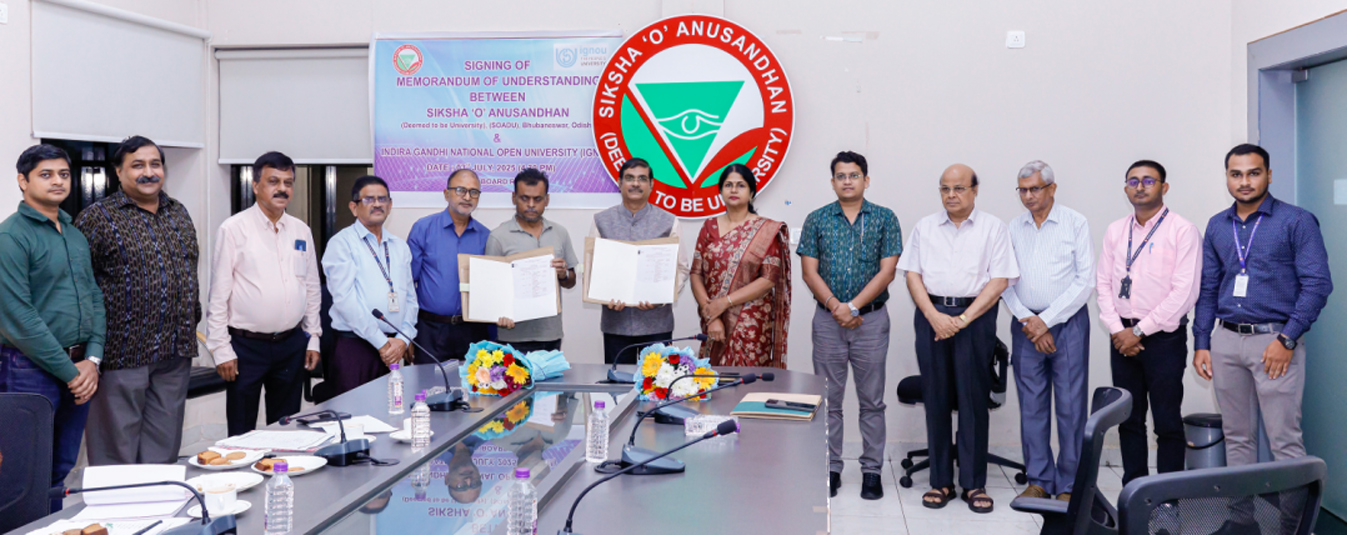 BHUBANESWAR: The Siksha ‘O’ Anusandhan Deemed to be University (SOA) here has signed a Memorandum of Understanding (MoU) with the Indira Gandhi National Open University (IGNOU) for jointly offering seven academic programs in agricultural sciences under distance education system by setting up a Learner Support Centre (LSC) in SOA.