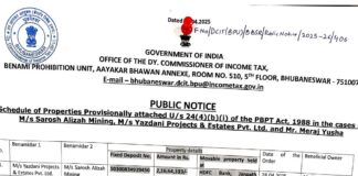BHUBANESWAR: The Benami Prohibition Unit of Income Tax Department of Bhubaneswar has recently provisionally attached benami properties worth Rs 45,10,28,939/- in the...