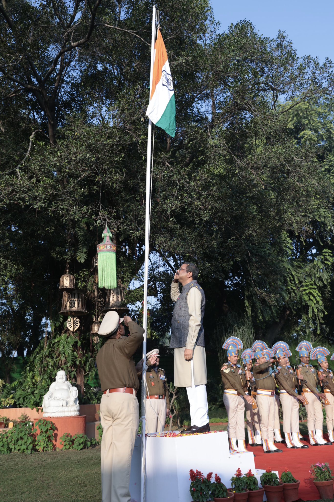 NEW DELHI:Union Minister Shri Dharmendra Pradhan proudly hoisted the national flag at his residence in New Delhi today on the occasion of the 77th Republic Day . On this auspicious occasion, he extended his warm greetings to all the countrymen and paid tribute to India’s democratic values and constitutional consciousness .
