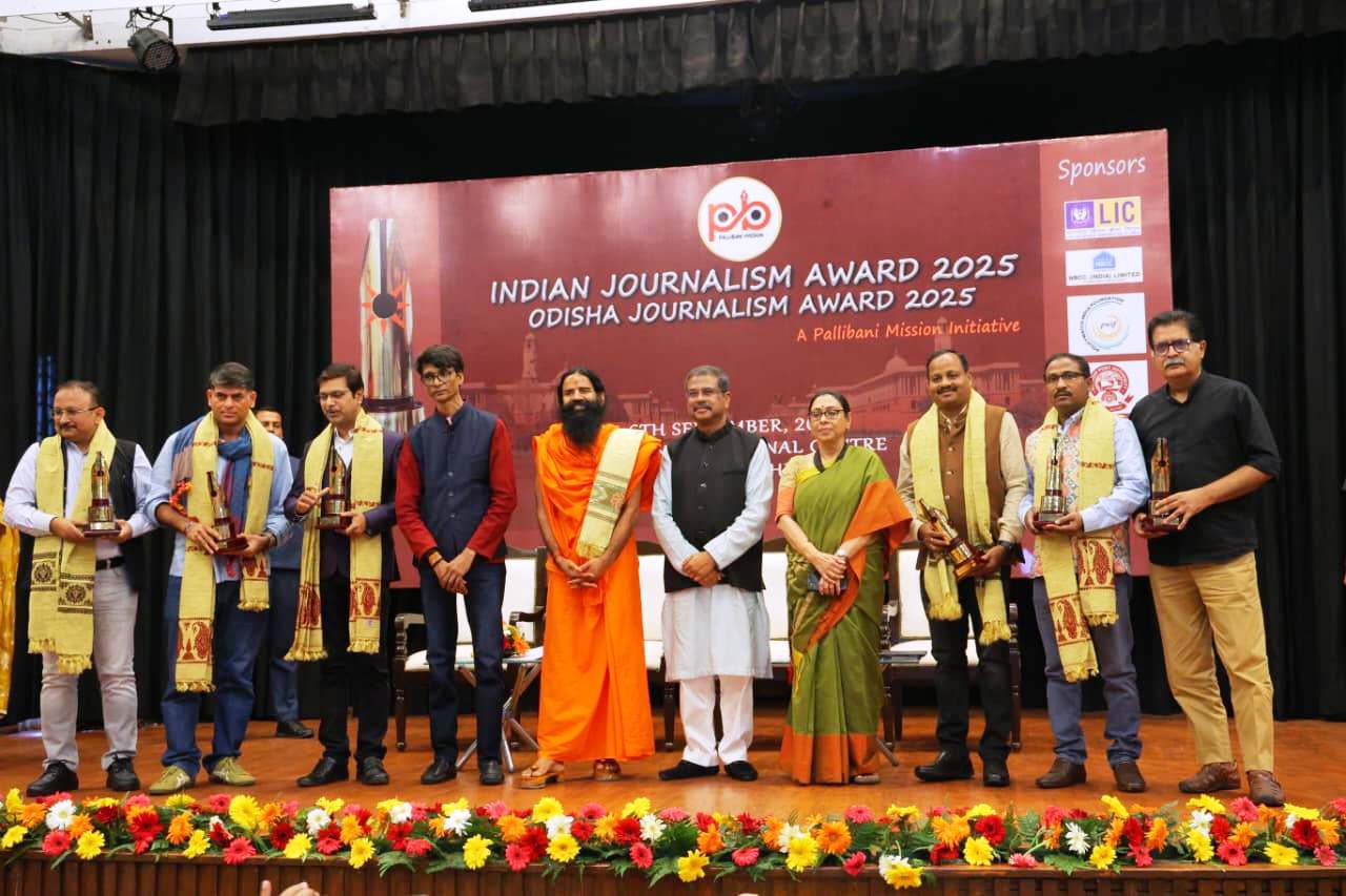 It is noteworthy that at this award ceremony, Shri Sanjiv Paliwal, Editor of ‘Aaj Tak’, Shri Pratap Somvanshi, Editor of ‘Lallintop’, Shri Saurabh Dwivedi, Editor of ‘Lalintop’ were honored with the Indian Journalism Award-2025. Similarly, Shri Sanjavish K. Sarangi, Editor of Odisha ‘Argus’ Digital, Shri Satyasunder Barik, Special Correspondent of ‘The’ Hindu, Shri Ratnakar Bhoi, Sambalpur District Correspondent of Dainik Bhasam were honored with the “Odisha Journalism Award-2025”. Yoga Guru Baba Ramdev, New Indian Express Group Editor Smt. Kondi Bhattacharya and Chairman of Pallibani Mission Shri Ramachandra Nath were prominently present at the ceremony. A special magazine of Pallibani Mission was also launched by the guests.