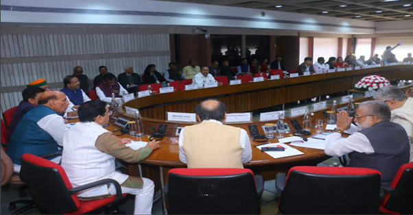 The meeting was held under the Chairmanship of Union Minister of Defence, Shri Raj Nath Singh. It was also attended by Union Minister for Commerce & Industry, Consumer Affairs, Food and Public Distribution & Textiles, Shri Piyush Goyal who is also the Leader of the House in Rajya Sabha; Minister of State for Parliamentary Affairs & Ministry of Culture, Shri Arjun Ram Meghwal and Minister of State for Parliamentary Affairs & Ministry of External Affairs, Shri V. Muraleedharan.